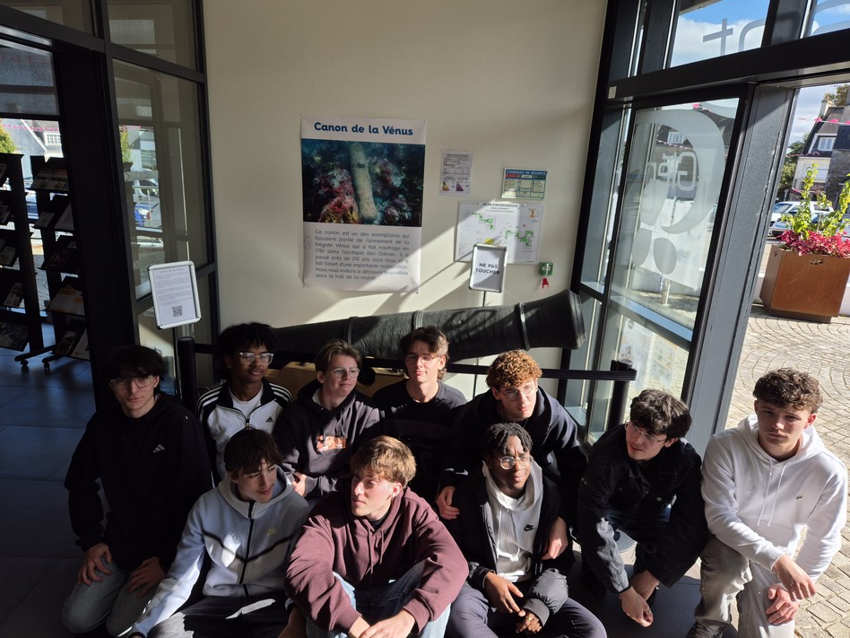 Jeudi 9 octobre, les élèves de la section Ouvrages du Bâtiment Métallerie se sont rendus à Fouesnant pour découvrir le résultat concret de leur travail : la reconstitution complète de l’affût de canon désormais exposé dans le hall de la mairie.
